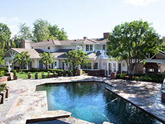 Located on over an acre with a fully usable lot. This Sophisticated yet charming home offers quality finishes throughout. 6 Bedrooms, 6.5 Bathrooms, approximately 8,583 square feet of living space. Dramatic foyer. Generous living room with coffered ceilings. Large gourmet kitchen with center island, breakfast area, quality built-in stainless steel appliances, granite counter tops and walk-in pantry. True formal dining room with butler’s pantry. Office/Library. Huge family room with vaulted beamed ceilings and bar. Game room features a brick fireplace and coffered ceilings. Romantic master suite offers a sitting area, fireplace and balcony overlooking the gorgeous grounds. Luxury master bath with two walk-in closets. Three additional en-suite bedrooms upstairs with a maids and guest room located downstairs. Top quality wood, stone and cabinetry throughout. The fabulous entertainer’s backyard features a sparkling pool, spa, fountains, and gazebo. The yard also offers an outdoor dining, living area with dual sided fireplace and built in barbeque center. The Equestrian area features a 6 Stall barn with in/outs, tack and feed room, round pen and large lighted grass turn out or riding ring. Triple car garage, gated parking area, with direct access to home. Truly a must see!